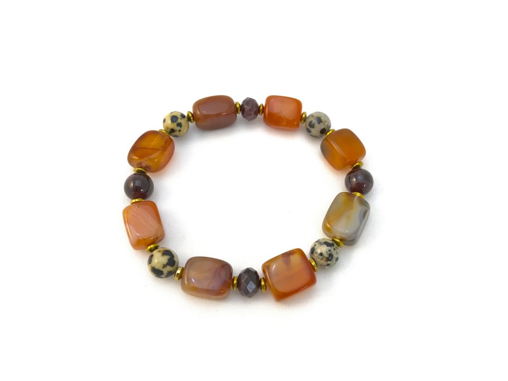 › Náramky › Náramky polodrahokamy › Karneol › Náramek karneol jaspin dalmatin a almandin