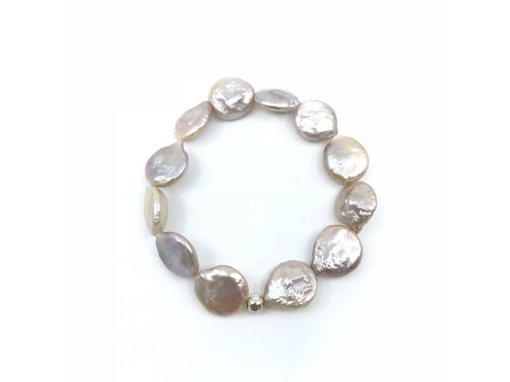 › Náramky › Náramky perlové › Perlový náramek růžové placaté perly